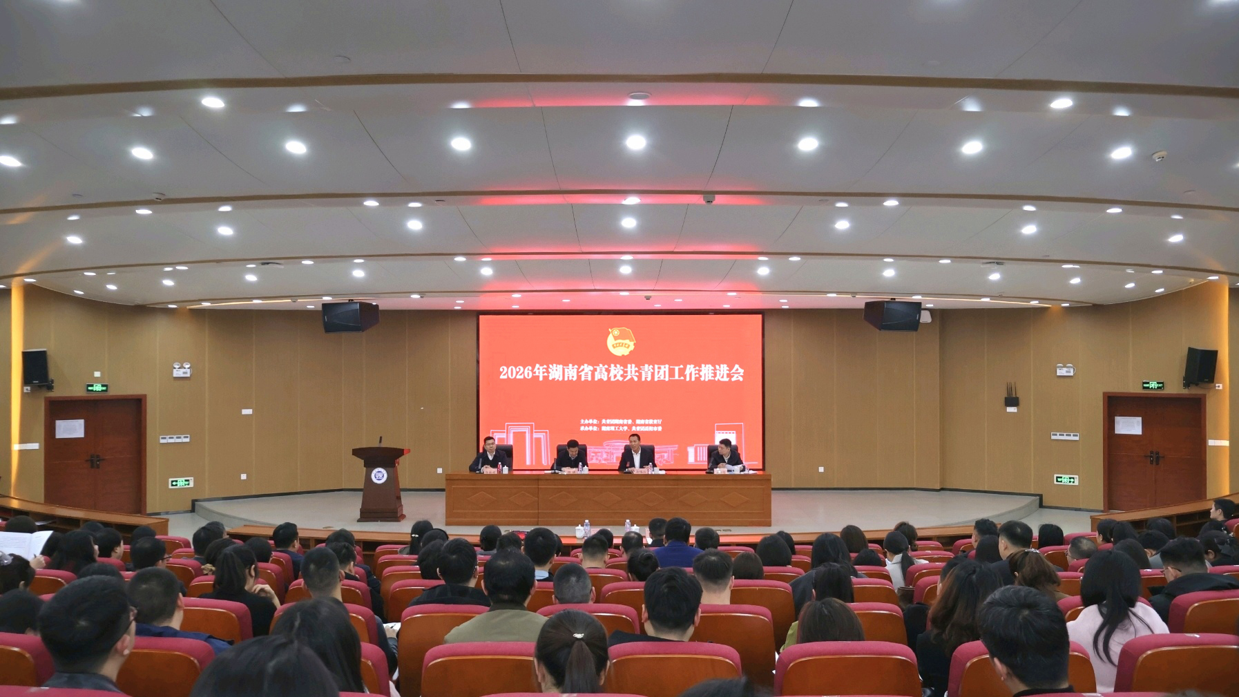 3月24日下午,2026年湖南省高校共青团工作推进会在我校举行。团省委副书记刘训,省委教育工委委员、省教育厅党组成员余伟良,岳阳市人民政府副市长提名人选、党组成员邓灿出席并讲话。学校党委书记张国云出席并致辞。学校党委委员、副校长徐振祥出席会议。